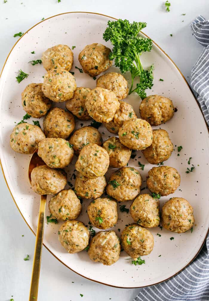 - ground turkey – I used lean ground turkey for these meatballs because it’s low in fat and calories while being a great source of protein, but you could also make these using ground chicken, ground beef, ground pork or even Italian sausage.